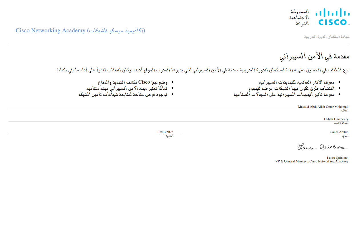 شهادة من سيسكو في مبادئ الشبكات والأمن السيبراني
